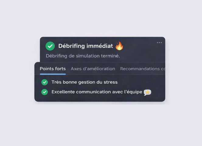 Les formateurs peuvent observer les interactions, analyser les comportements et débriefer chaque mise en situation pour guider la progression.